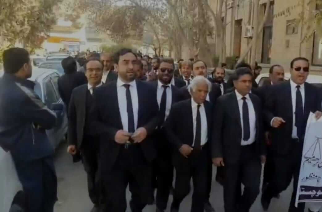کوئٹہ : کوئٹہ میں وکلاء نے عدالتی احاطے کے اندر 26ویں اور 27ویں آئینی ترامیم کے خلاف شدید احتجاج کیا اور ان ترامیم کو جمہوری اقدار، عدلیہ کی آزادی اور شہری حقوق کے لیے سنگین خطرہ قرار دیا۔